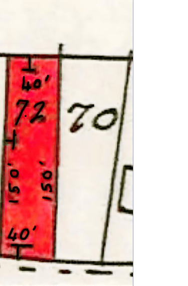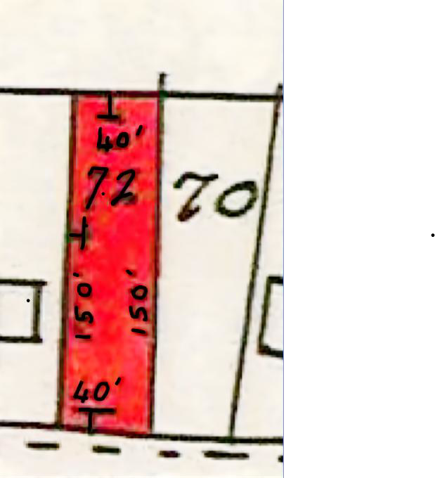 The red boundary line is at forty feet, based on Rosa Bell's front and rear dimension on their title deed.